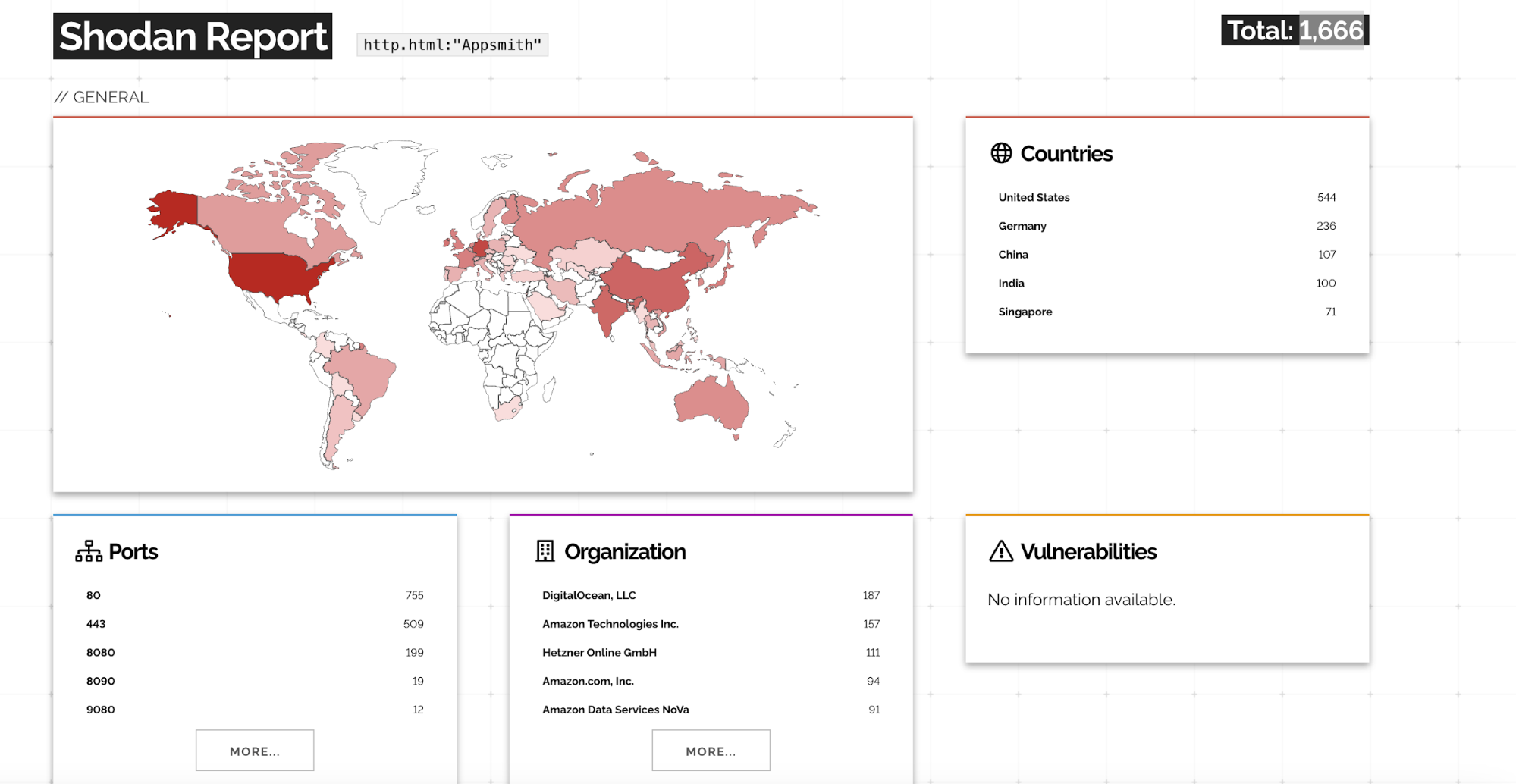 Shodan intelligence reveals 1,666 publicly accessible Appsmith instances exposed on the internet. Analysis indicates a significant number of these instances are running Appsmith 1.x versions affected by CVE-2026-22794.