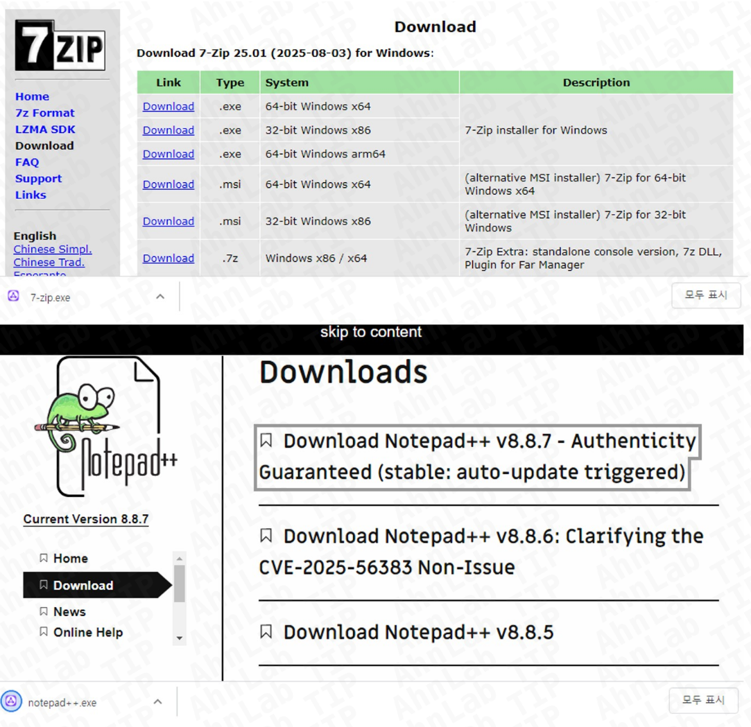 ASEC researchers uncovered multiple attack campaigns using fraudulent download pages mimicking legitimate software distribution sites. The fake websites impersonate official download portals for widely-used free utilities including Notepad++, 7-Zip, Telegram, ChatGPT, and OpenAI applications.