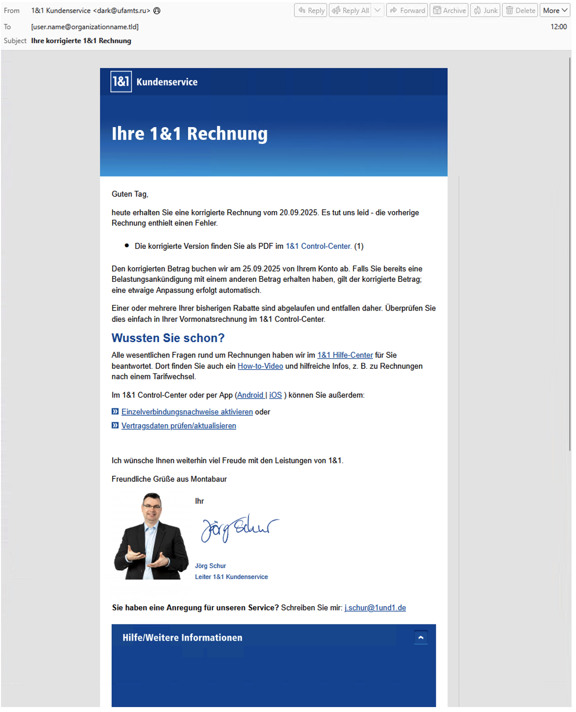 TA584 relies heavily on email phishing campaigns to initiate compromise. Lures impersonate legitimate organizations across multiple sectors including finance, healthcare, recruitment, and government services. Messages are carefully crafted to trigger urgency or curiosity, driving users to malicious landing pages.