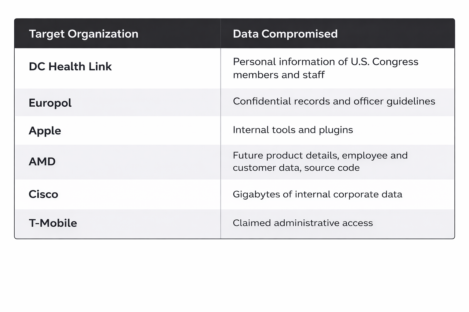 Hacking Collective: He coordinated attacks through a group targeting telecommunications firms and healthcare providers.