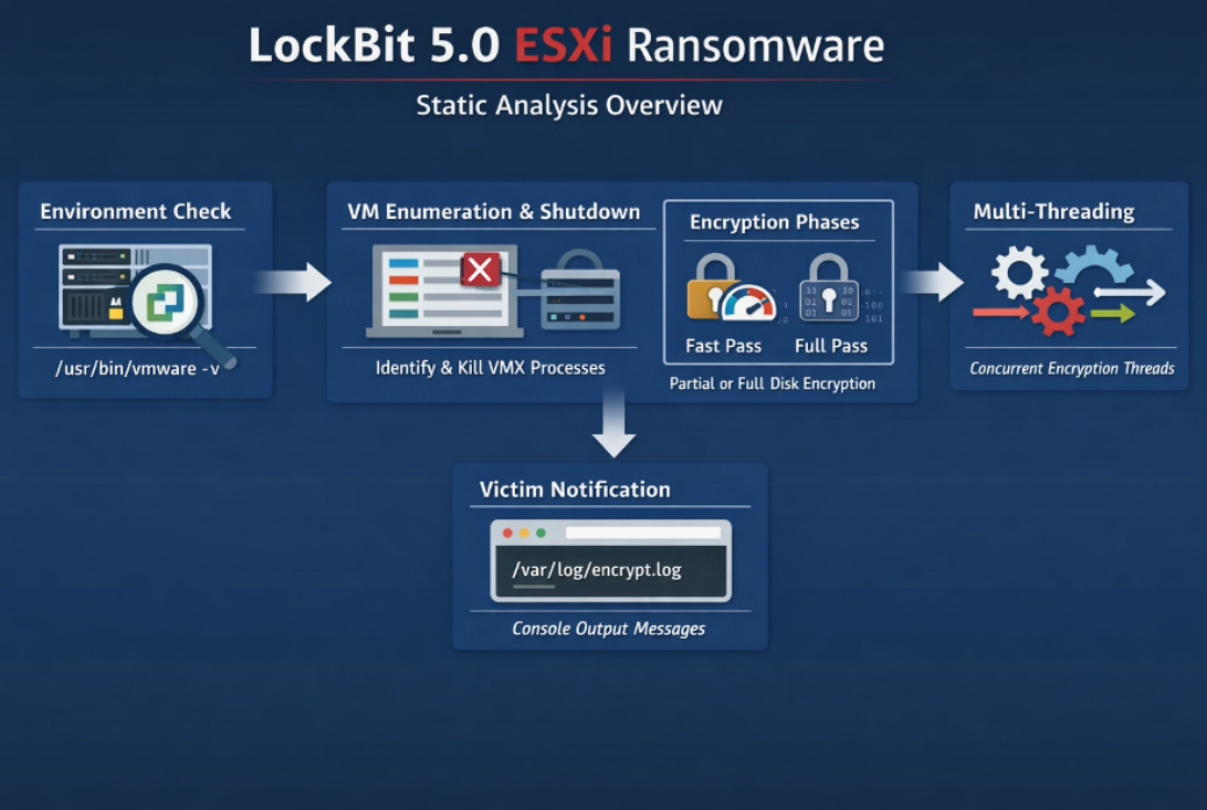 By targeting the hypervisor layer rather than individual guest operating systems, LockBit 5.0 bypasses endpoint security tools running inside VMs entirely.