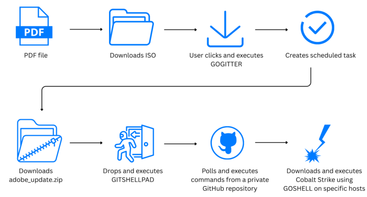 The campaign, dubbed Gopher Strike, deploys a new downloader called GOGITTER, a backdoor named GITSHELLPAD, and a shellcode loader called GOSHELL that ultimately delivers Cobalt Strike beacons to compromised systems. The attack chain demonstrates sophisticated targeting techniques including server-side checks that only deliver payloads to Windows systems with Indian IP addresses.