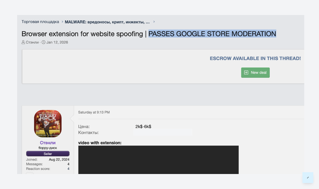A malware-as-a-service toolkit circulating on Russian cybercrime forums offers turnkey website spoofing capabilities disguised as a Chrome extension, with its premium tier guaranteeing publication on the official Chrome Web Store, according to research published by Varonis.