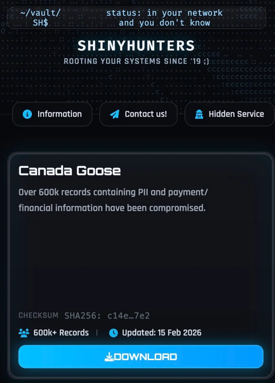 Despite these disruptions, the Canada Goose leak demonstrates ShinyHunters remains operationally active and continues publishing stolen datasets when victims refuse to pay.